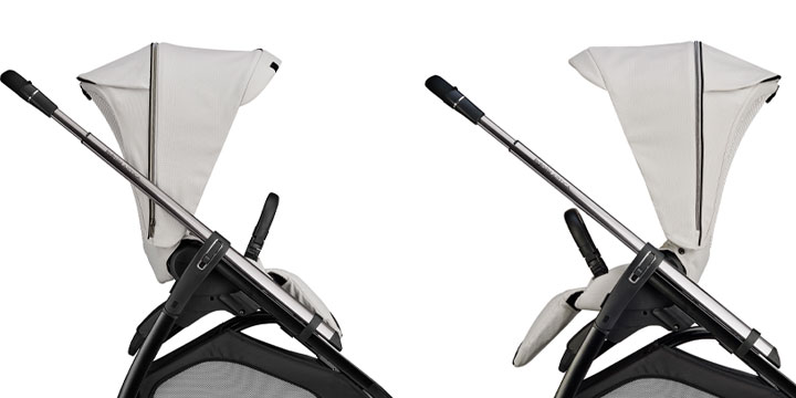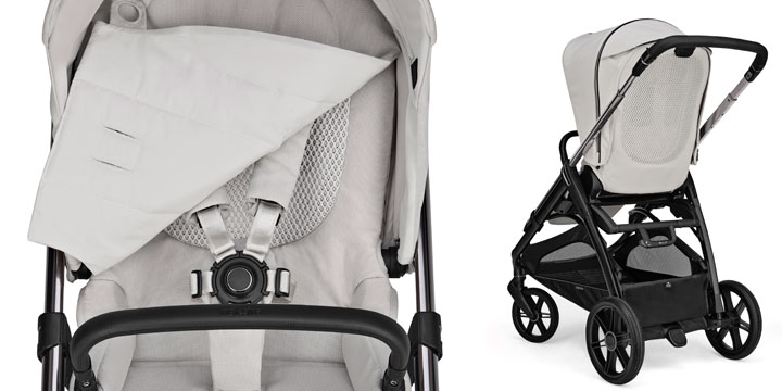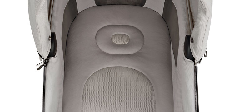 Siedzisko spacerowe wózka jest zaprojektowane tak, aby podczas każdego spaceru maluch czuł się w spacerówce jak najlepiej. Właśnie dlatego siedzisko wyposażono w miękką, przytulną wkładkę Comfort Cover, która po zdjęciu odsłania wentylowane oparcie siedziska. Siateczka 3D jest najlepszym rozwiązaniem, dzięki któremu maluch jest przygotowany na zmierzenie się z wysokimi temperaturami, a poza tym dzięki konstrukcji oparcia ma zapewnioną odpowiednio stabilną pozycję. Wentylacja znajduje się także w budce przeciwsłonecznej spacerówki, którą dodatkowo pokryto powłoką z filtrem UPF50+.