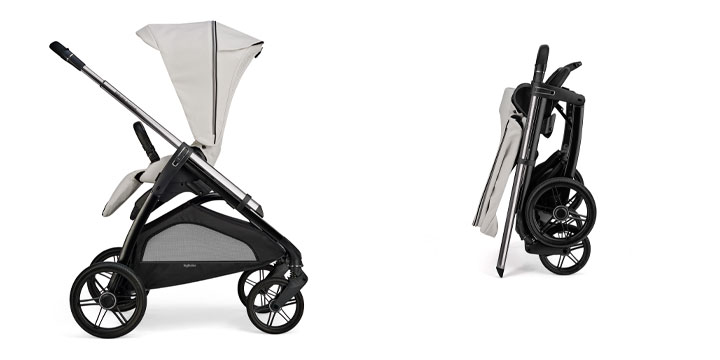 Stelaż Aptica składa się jedną reką, z siedziskiem spacerowym ustawionym przodem lub tyłem do rodzica. Wózek z łatwością zmieści się do większości bagażników, a jego kompaktowe wymiary po złożeniu pozwolą Ci zaoszczędzić sporo miejsca.