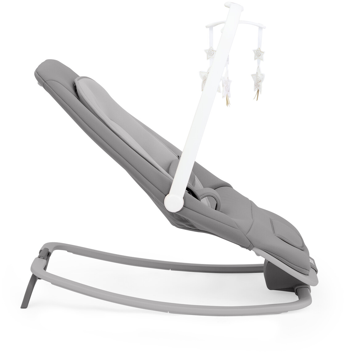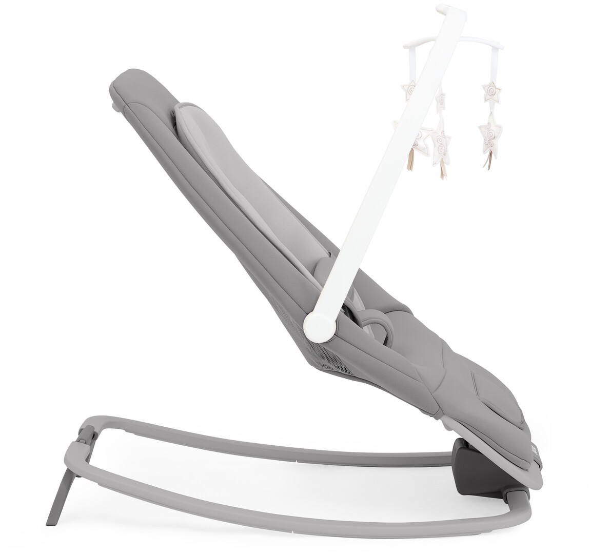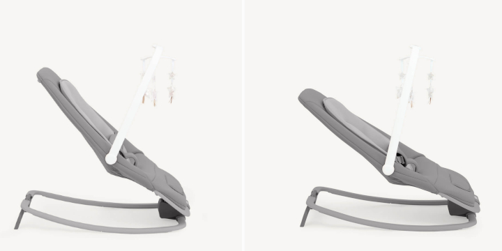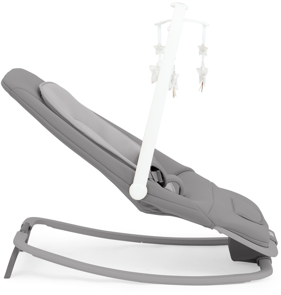 Siedzisko oferuje 3-stopniową regulację kąta nachylenia oraz 2 pozycje ustawienia podnóżka, co pozwala na idealne dopasowanie pozycji do potrzeb dziecka – od aktywnej zabawy po błogi relaks. Otwarta konstrukcja góry zapewnia rodzicowi łatwy dostęp do malucha w każdej chwili.