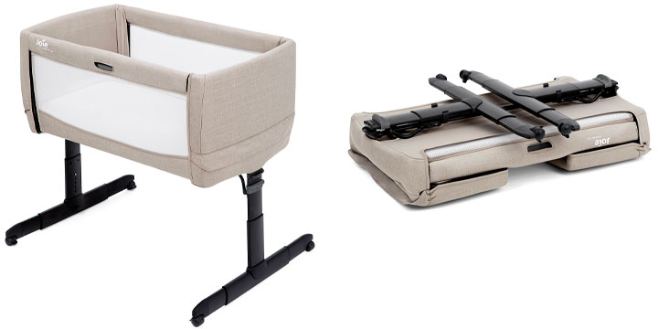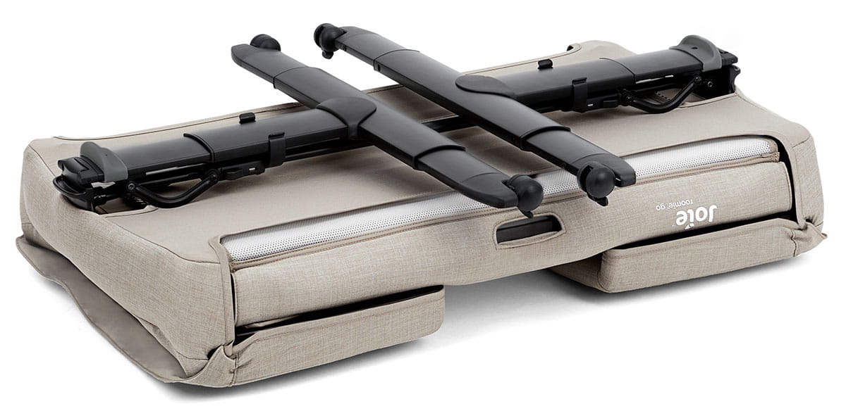 Łatwe składanie Joie Roomie Go do kompaktowych rozmiarów pozwala na wygodny transport oraz przechowywanie łóżeczka.