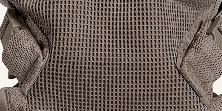 Szeroki pas biodrowy oraz miękko wyściełane pasy naramienne z płynną regulacją skutecznie przenoszą ciężar dziecka z ramion na biodra. Dzięki równomiernemu rozłożeniu masy, nawet dłuższe wędrówki z dzieckiem o wadze 15-16 kg nie powodują dyskomfortu ani bólu pleców u opiekuna.