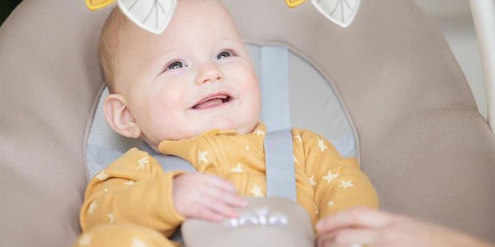 Stabilna, smukła rama bez problemu mieści się w drzwiach, a 5-punktowe pasy z miękkimi otulinami gwarantują, że maluch pozostanie w bezpiecznej pozycji bez ryzyka otarć.