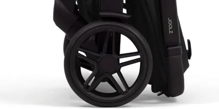 Solidne koła i dopasowująca się do warunków drogowych amortyzacja pozwolą łatwo proszadzić wózek Joolz Hub 2 ale też sprawią, że dla dziecka podróż przebiegnie bardzo przyjemnie.
