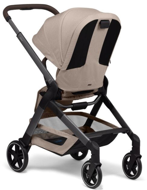 Solidne koła i dopasowująca się do warunków drogowych amortyzacja pozwolą łatwo proszadzić wózek Joolz Hub 2 ale też sprawią, że dla dziecka podróż przebiegnie bardzo przyjemnie.