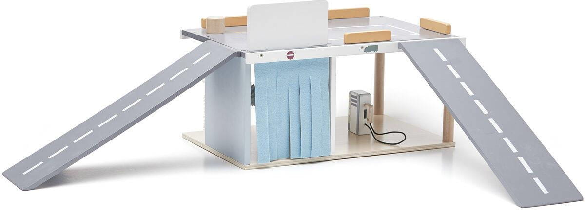 Napraw i umyj samochód, a potem napełnij zbiornik paliwa. Myjnia samochodowa ma obracające się wałki myjące z miękkimi szczotkami, dzięki czemu wygląda realistycznie. W zestawie są także trzy małe narzędzia do naprawy i dystrybutor paliwa. Samochody mają otwór umożliwiający tankowanie.