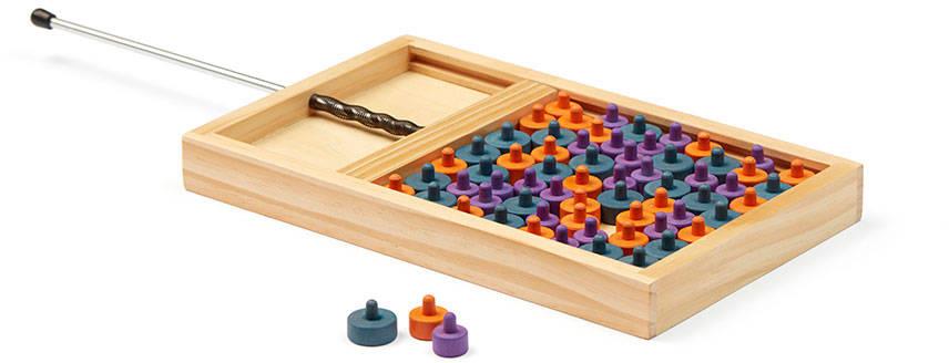 To klasyczna drewniana gra planszowa, która bawi zarówno dla dorosłych, jak i dla dzieci.