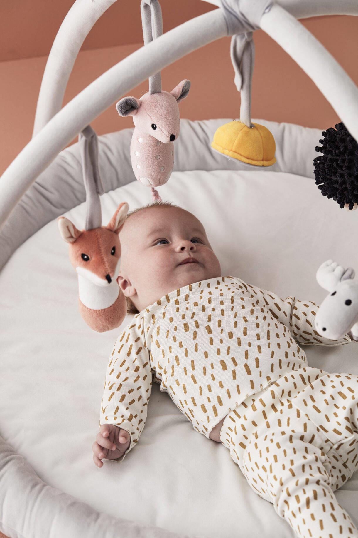 Zabawka, dla której inspiracją był las. Twoje dziecko będzie odkrywać i dotykać wiszące zabawki. Pozna łosia Bo, liska Edvina, jeża Stellę i myszkę Torę. To wszystkie zwierzaki z naszej serii Edvin, a niektóre kryją w sobie grzechotkę. Wśród zawieszek jest również owalne lusterko. Zabawki przyczepia się za pomocą rzepów.