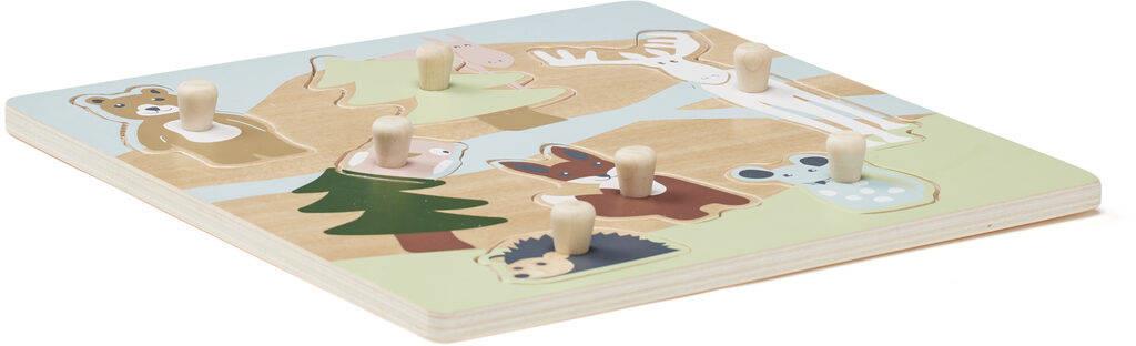 Jeż Stella, łosie Bo i Sue, miś Max, lis Ed, sowa Ola i mysz Tor czekają na Ciebie w tej siedmioczęściowej układance. Małe drewniane uchwyty przy puzzlach ułatwiają umieszczenie ich we właściwym miejscu. Układanie puzzli to świetne ćwiczenie usprawniające koordynację wzrokowo-ruchową i rozwijające motorykę małą. Przy okazji dziecko uczy się samodzielnie rozwiązywać problemy.