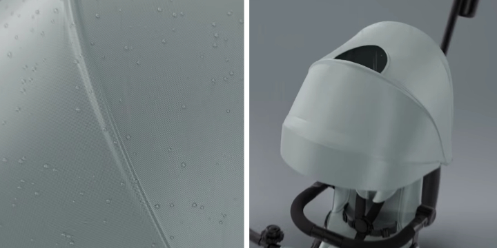 Wodoodporny, regulowany daszek z wysokim filtrem UV skutecznie chroni dziecko przed szkodliwym promieniowaniem słonecznym oraz niespodziewaną mżawką. Możliwość złożenia daszka pozwala na szybką adaptację do zmieniających się warunków atmosferycznych i łatwiejsze przechowywanie.