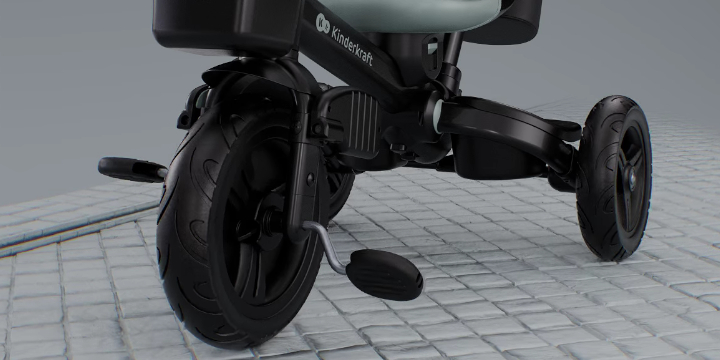 Duże, wytrzymałe koła doskonale tłumią drgania podczas jazdy po kostce brukowej czy parkowych ścieżkach. Zapewniają stabilność i lekkość prowadzenia, dzięki czemu rodzic nie musi wkładać dużego wysiłku w manewrowanie, a dziecko cieszy się płynną, spokojną podróżą.