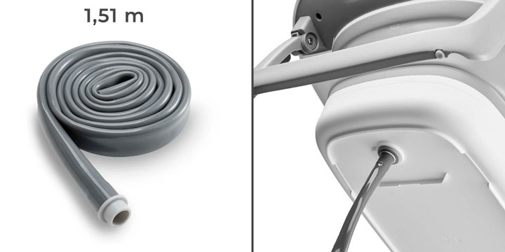 Wanienka została wyposażona w wygodny odpływ z elastycznym wężykiem o długości 151 cm, co pozwala szybko i bezproblemowo odprowadzić wodę bez konieczności dźwigania. To praktyczne rozwiązanie, które ułatwia codzienną kąpiel i sprawia, że opróżnianie wanienki jest higieniczne i bezwysiłkowe.