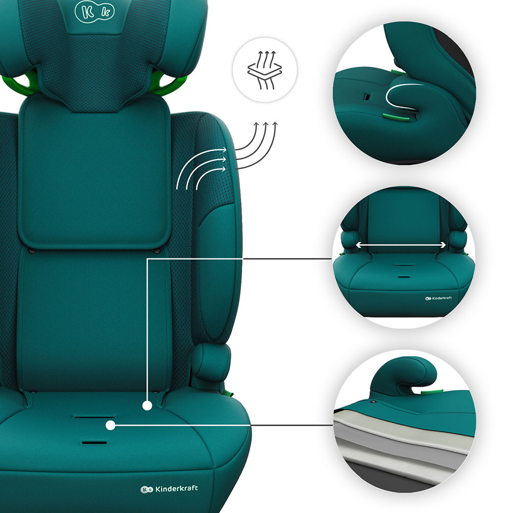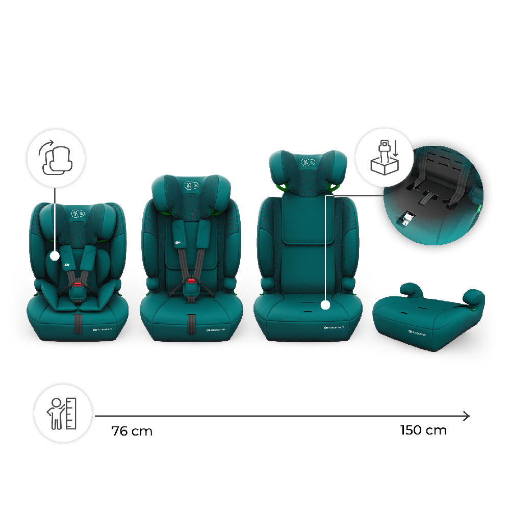 Kinderkraft Comfort Up 2 Plus - fotelik samochodowy 3w1 76-150 cm, 9-36 kg | Green