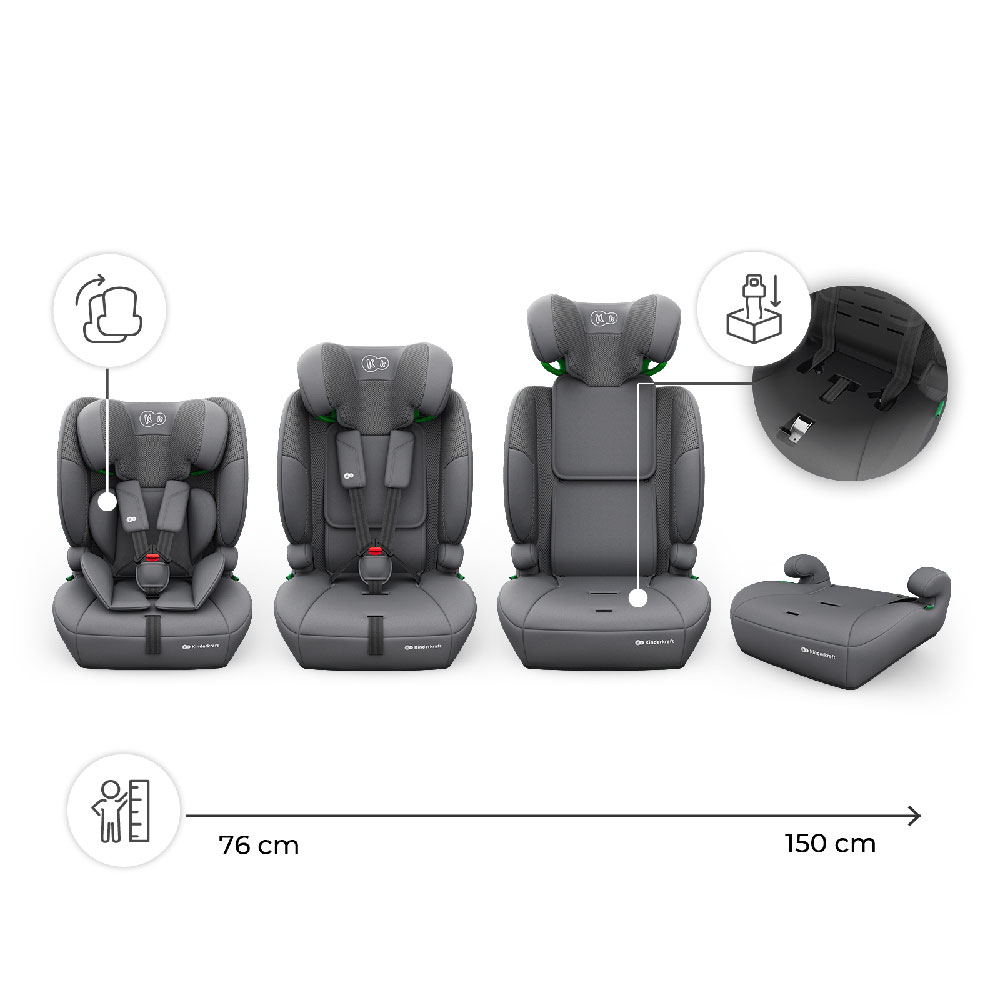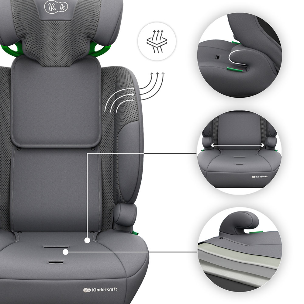 Kinderkraft Comfort Up 2 Plus - fotelik samochodowy 3w1 76-150 cm, 9-36 kg | Grey