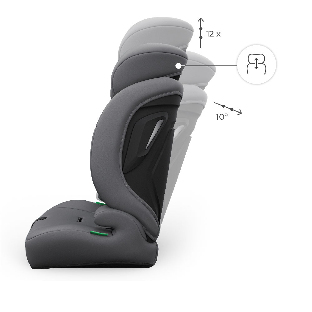 Dopasowanie fotelika do wzrostu odbywa się błyskawicznie dzięki systemowi EASY GROW, który oferuje aż 12 poziomów wysokości zagłówka. Jednym ruchem ręki zmieniasz parametry siedziska, dbając o to, by pasy zawsze znajdowały się na odpowiedniej wysokości. Tak precyzyjna regulacja to gwarancja, że fotelik dla starszaka będzie zawsze tak samo bezpieczny i wygodny, jak na początku użytkowania.