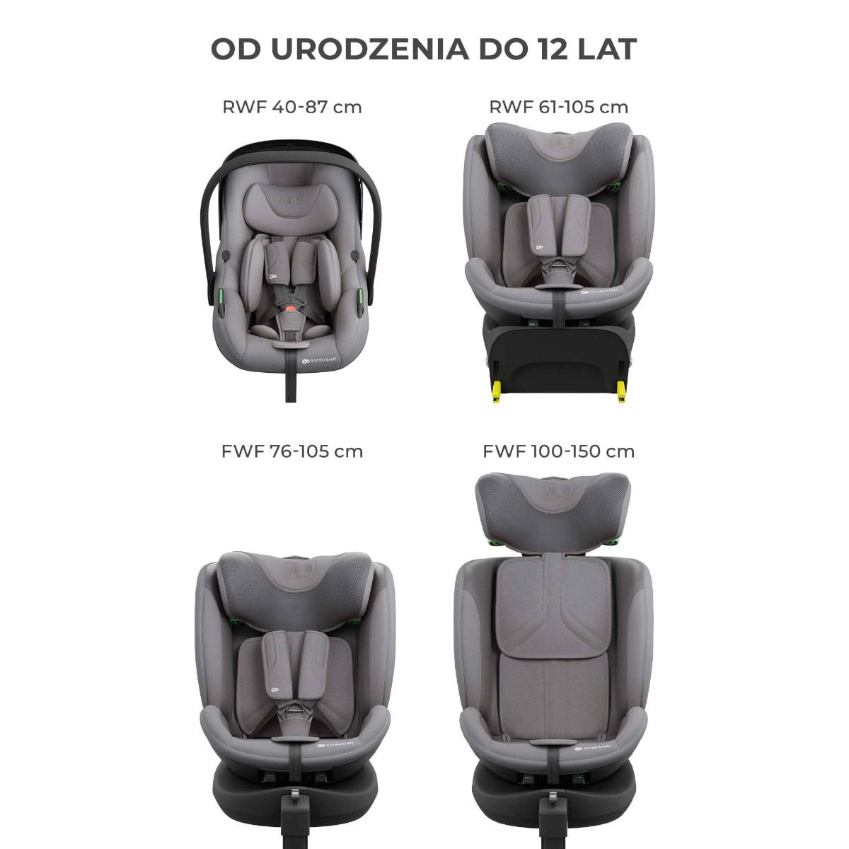 Zestaw 3w1 Kinderkraft Endura Safe to kompleksowe rozwiązanie, które zapewnia bezpieczeństwo i komfort dziecka od pierwszych dni życia aż do około 12. roku (zakres wzrostu 40–150 cm).