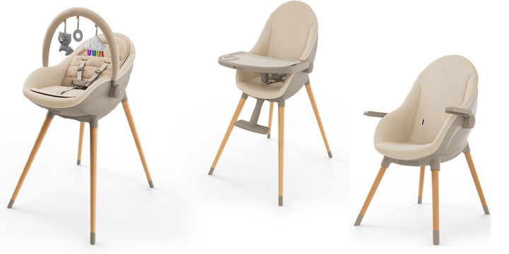 Wyposażone w zdejmowaną nakładkę, krzesełko pozwala na błyskawiczne sprzątnięcie po jedzeniu; tacka posiada 3 stopnie regulacji, co zapewnia idealne dopasowanie odległości do wzrostu dziecka.