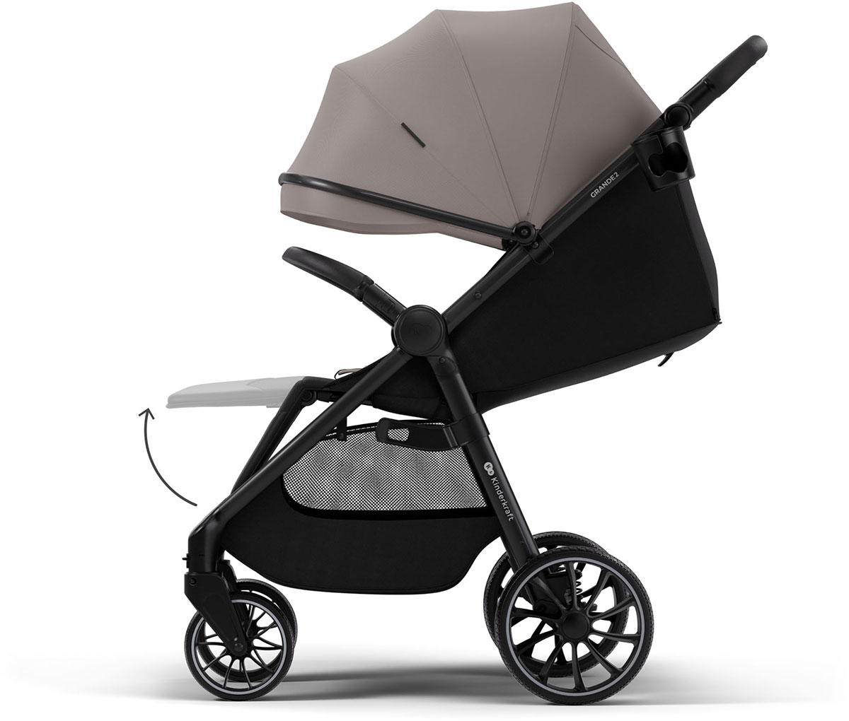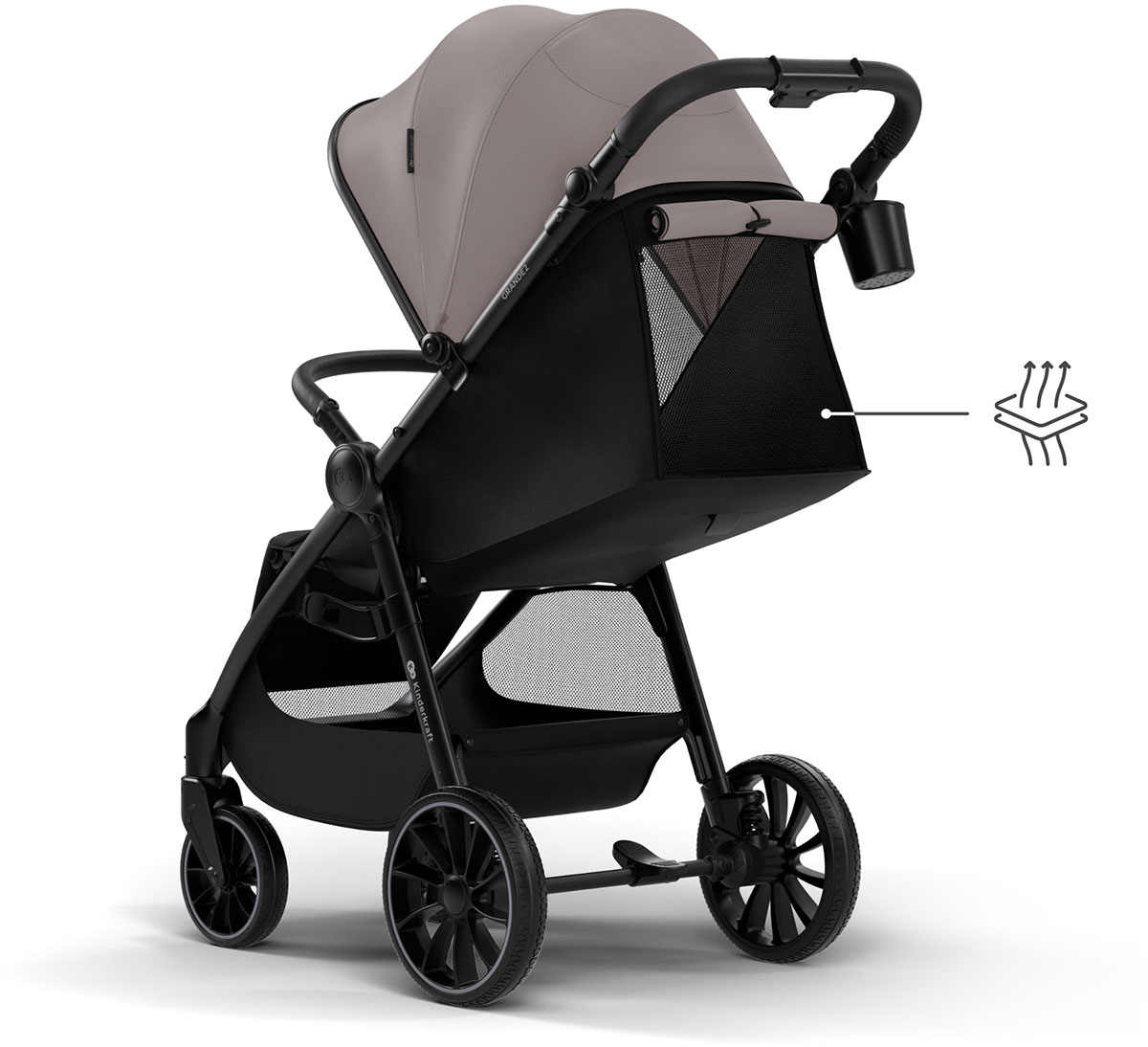 Konstrukcja została wzbogacona o uchwyt na kubek, dzięki czemu ulubiony napój rodzica lub dziecka jest zawsze pod ręką podczas miejskich manewrów.