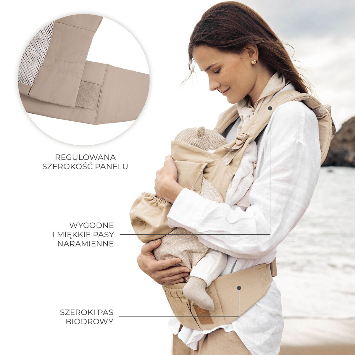 Kinderkraft Huggy - ergonomiczne nosidełko dziecięce | Kinderkraft x Bizuu Whisper Dune