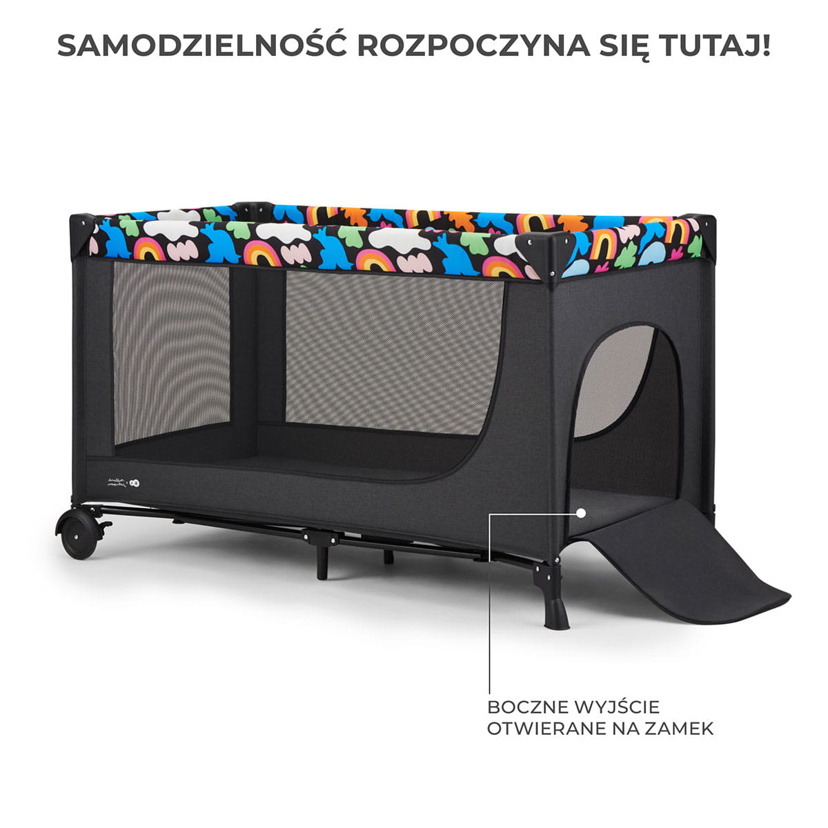 Joy 2 posiada osobne wejście z boku, które maluch może potraktować jako drzwi umożliwiające samodzielne przedostawanie się do łóżeczka i z niego. Okienko ma wszyty zamek błyskawiczny.