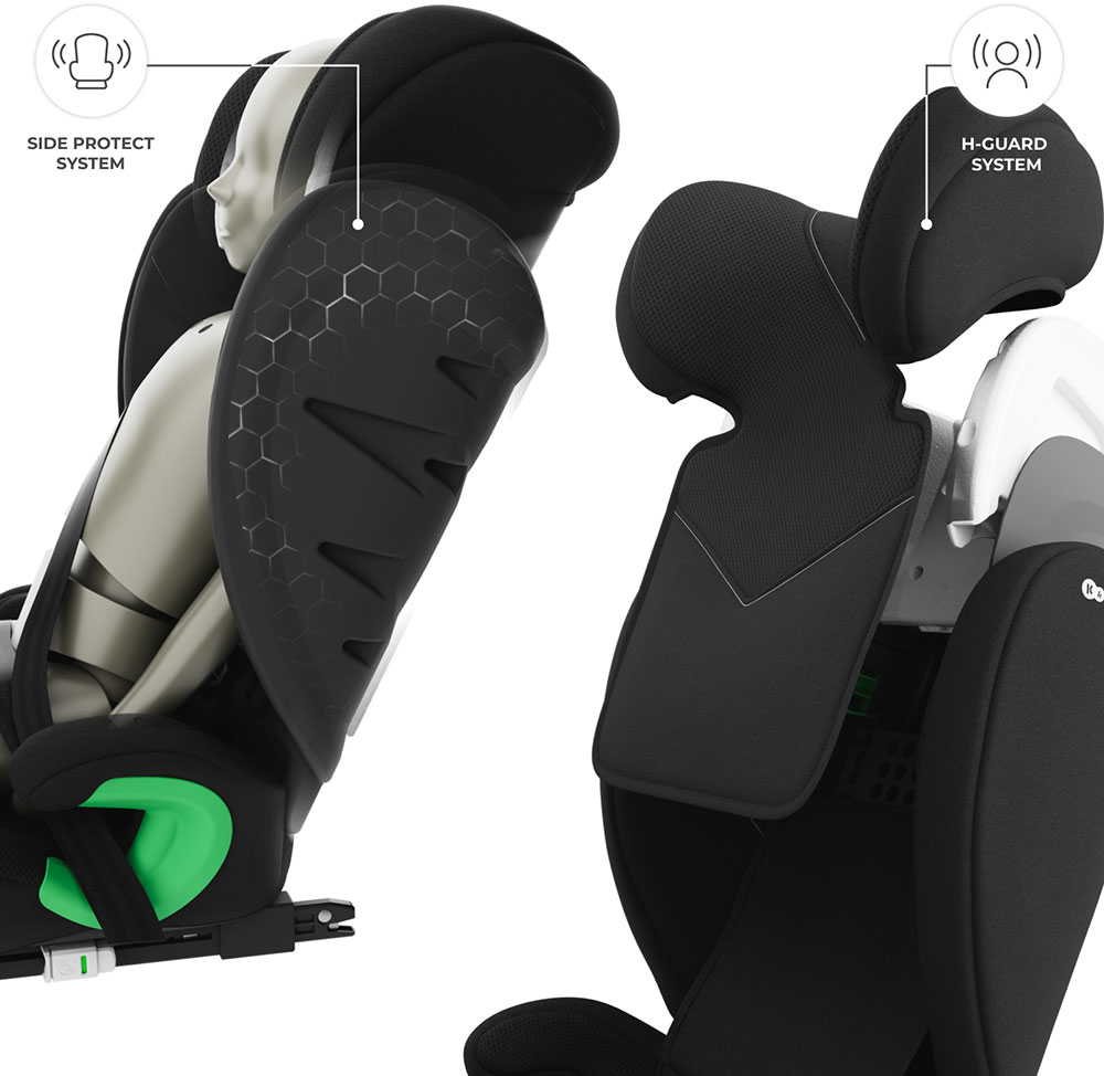Wzmocniony, 3-warstwowy zagłówek oraz system osłon bocznych (Side Protect System) skutecznie pochłaniają energię uderzenia, chroniąc wrażliwe strefy ciała dziecka podczas kolizji bocznych.