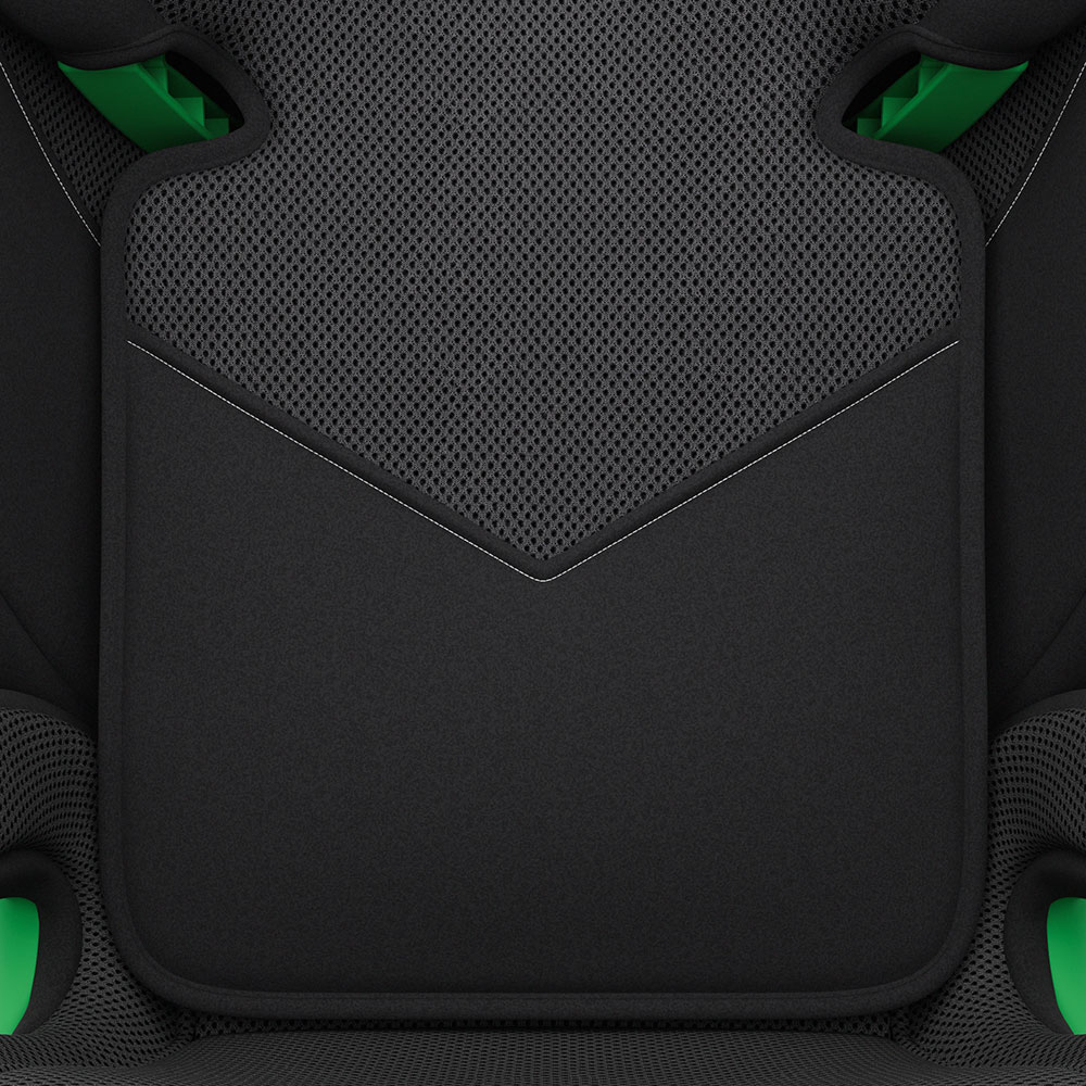 Unikalny, przewiewny materiał zapewnia stałą cyrkulację powietrza, co sprawia, że ten fotelik dziecięcy pozostaje komfortowy i chłodny nawet podczas upalnych letnich podróży.