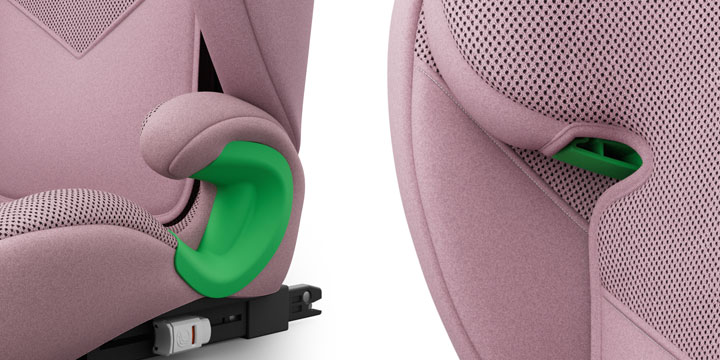 Czytelne oznaczenia ułatwiają prawidłowe przeprowadzenie pasa barkowego i biodrowego, co jest kluczowe dla bezpieczeństwa i zapobiega niebezpiecznemu przesuwaniu się pasów na ciało dziecka.