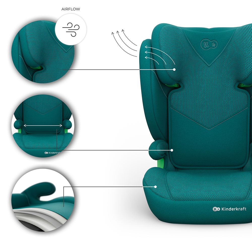 Miękkie wypełnienie oraz ergonomiczny profil sprawiają, że fotelik Kinderkraft oferuje wygodę klasy premium, eliminując zmęczenie podczas jazdy.