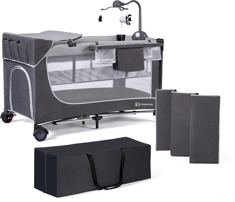 Kinderkraft Leody z akcesoriami to łóżeczko turystyczne, które dostosuje się do potrzeb całej rodziny. Jeśli często podróżujecie i w tle pojawiają się noclegi poza domem to łóżeczko turystyczne będzie dla Was niezbędnym dodatkiem do wyprawki dziecięcej.