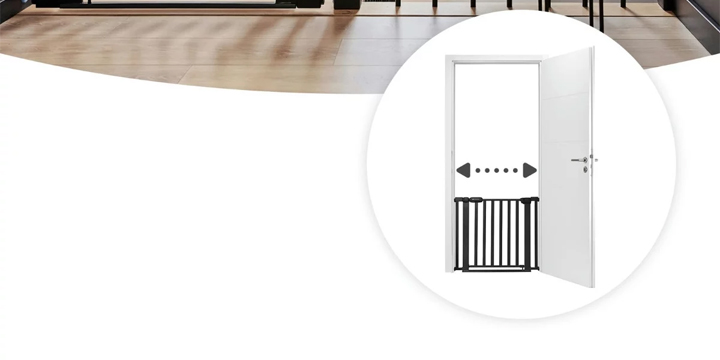 Szeroki zakres regulacji bramki (75-103 cm) sprawia, że będzie pasować do standardowej klatki schodowej lub drzwi. Najlepiej, aby w Twoim domu znalazły się przynajmniej dwie bramki - jedna zamontowana na parterze, chroniąca przed wejściem na schody bez opieki rodzica, kolejna na piętrze.