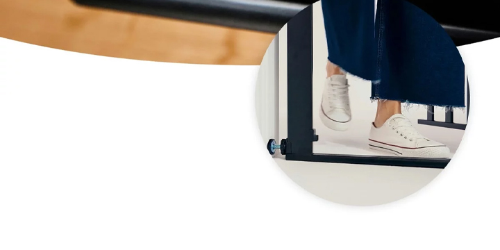 Belka Flat Step pozbawia bramkę Kinderkraft Lock&Go wysokiego progu, co zwiększa bezpieczeństwo każdego domownika poprzez eliminację ryzyka potknięcia się.