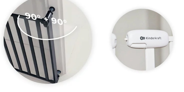 Lock&Go od Kinderkraft jest bramką rozporową, dzięki czemu do jej zamontowania nie są potrzebne narzędzia. Bramka jest zaprojektowana tak, aby w żadnym stopniu nie narażać dziecka na niebezpieczeństwo - system Flat Step sprawia, że nie posiada ona wysokiego progu, o które maluch mógłby się potknąć i wywrócić. Bramka rozporowa na schody od Kinderkraft posiada podwójne zabezpieczenie przed otwarciem.