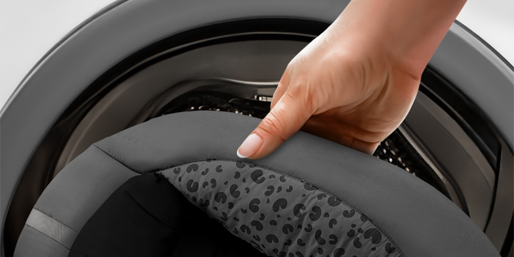 Poszycie leżaczka można zdjąć i wyprać w trybie 30 stopni. Dzięki temu łatwo pozbędziemy się plamek i odświeżymy produkt.