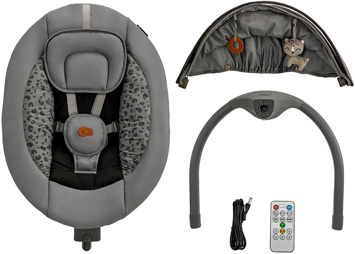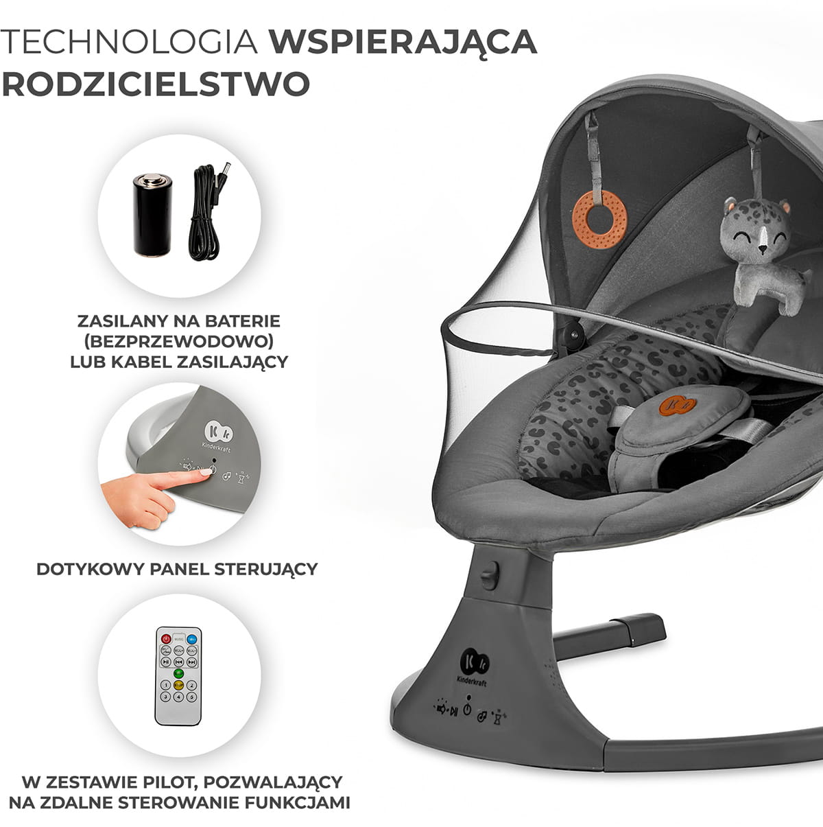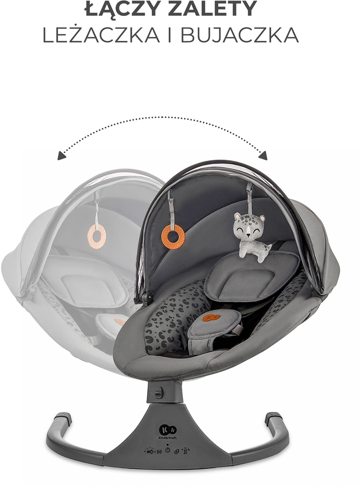 Kinderkraft Lumi 2 - elektryczny bujaczek, leżaczek 2w1 | Dark Grey