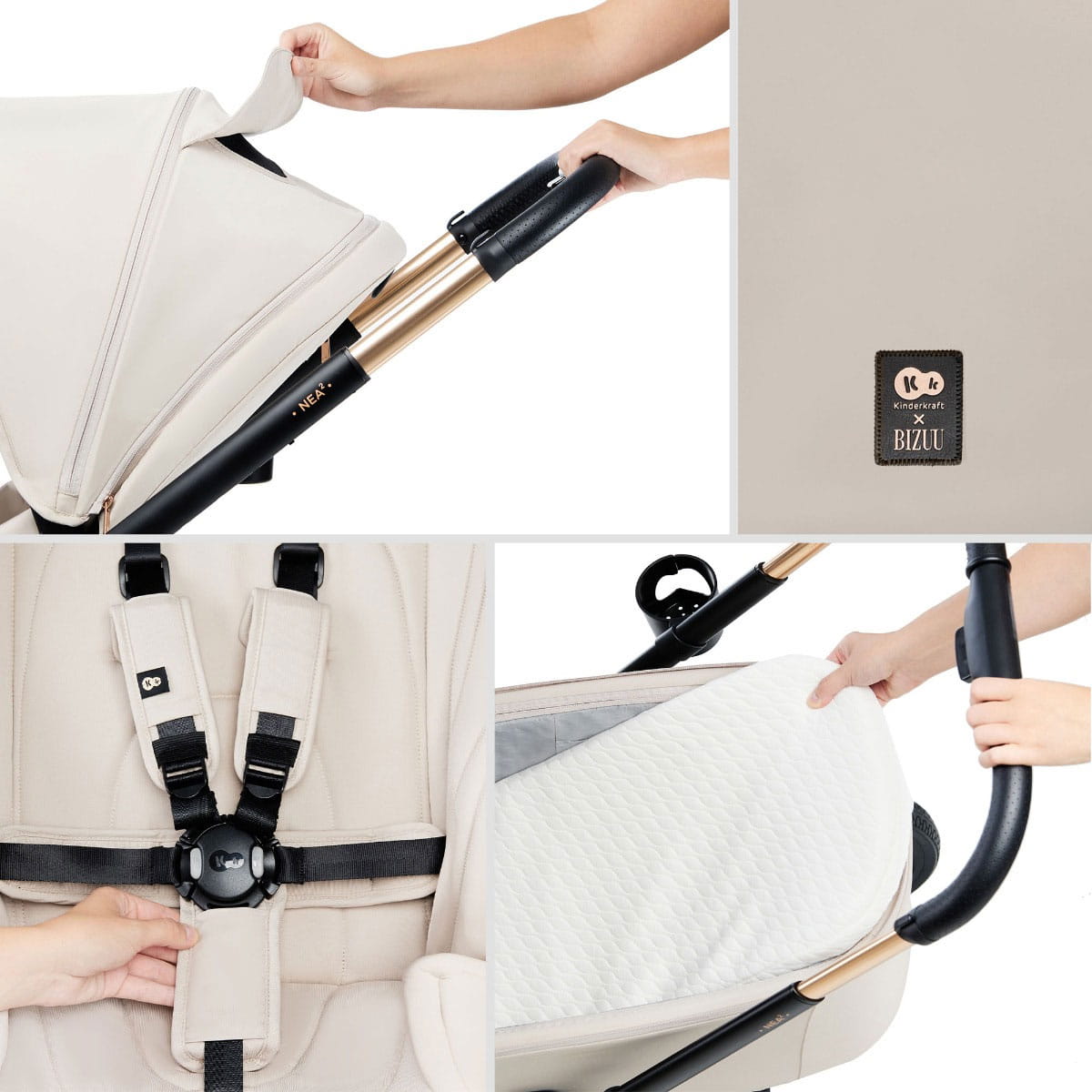 Kinderkraft Nea 2 - wielofunkcyjny wózek dziecięcy, zestaw 2w1 | Kinderkraft x Bizuu Whisper Dune