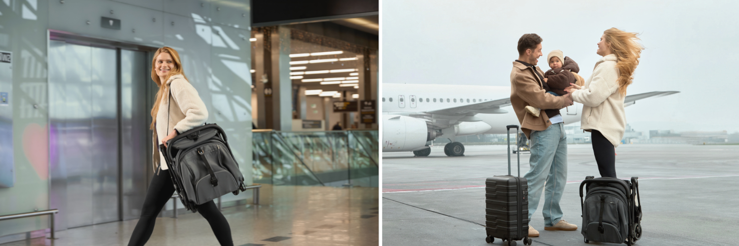 Nebo został zaprojektowany jako praktyczny wózek do samolotu i wózek na lotnisko – kompaktowy, podróżny format ułatwia przemieszczanie się. Pamiętaj tylko, że szczegółowe zasady mogą się różnić między liniami lotniczymi.