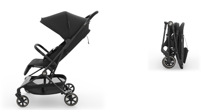 Mechanizm pozwala złożyć wózek spacerówkę sprawnie i bez siłowania się, nawet gdy w drugiej ręce trzymasz dziecko lub torbę. Po złożeniu wózek stoi samodzielnie, co jest mega wygodne w domu i w podróży.