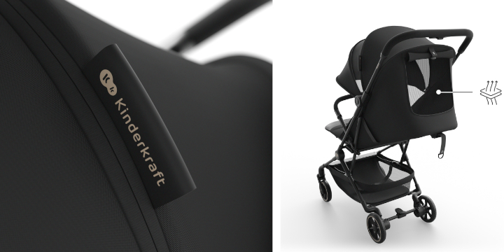 Budka chroni przed słońcem, a w razie pogorszenia pogody daje dodatkową osłonę. Jest też poszerzana i ma ukryte okienko, żebyś mógł kontrolować dziecko bez zatrzymywania wózka.