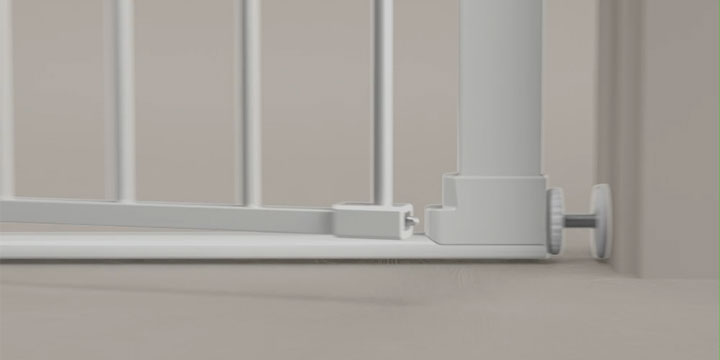 System rozporowy pozwala na szybki montaż bez użycia narzędzi. Bramka nie pozostawia żadnych śladów na ścianach ani futrynach, dzięki czemu idealnie nadaje się do mieszkań wynajmowanych lub nowo wykończonych.