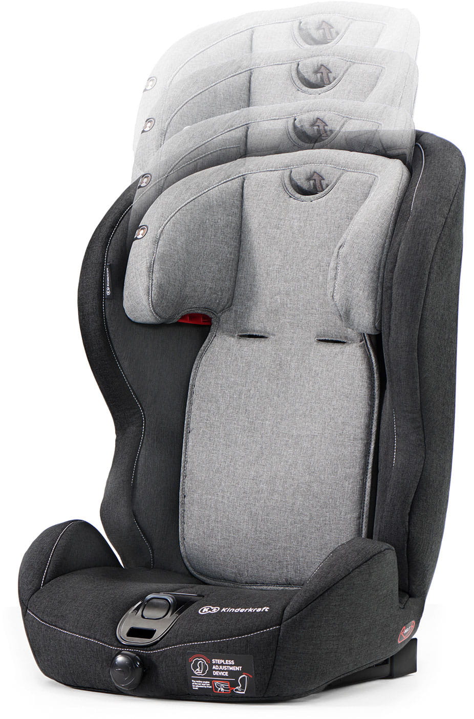 Zagłówek z możliwością 10-stopniowej regulacji umożliwia dopasowanie fotelika do stale rosnącego dziecka. Jego regulacja jest szybka i banalnie prosta, dzięki czemu nikomu nie sprawi kłopotu.