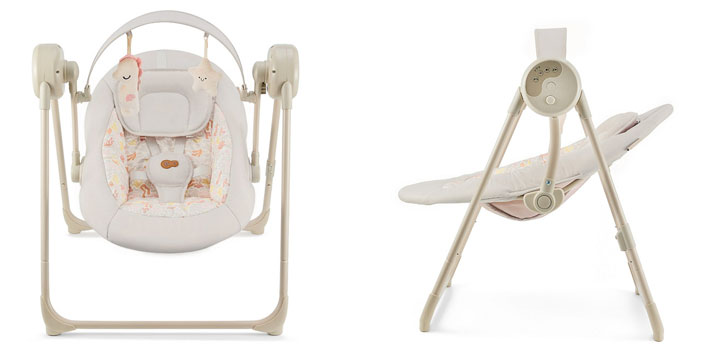 Urządzenie oferuje również osiem uspokajających melodii z regulacją głośności, co pozwala stworzyć przyjazną, wyciszającą atmosferę. Swingee posiada dwustopniową regulację siedziska, wygodną poduszkę podpierającą główkę oraz 5-punktowe pasy, które dbają o bezpieczeństwo malucha.