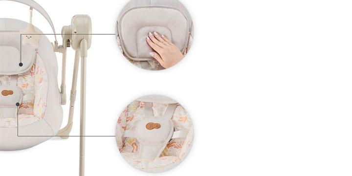 Dzięki regulowanej, ergonomicznej poduszce i 5-punktowym pasom z miękkimi osłonkami, Swingee zapewnia maluchowi wygodną pozycję i pełne bezpieczeństwo. Dziecko ma stabilne podparcie niezależnie od tego, czy bujaczek jest w ruchu, czy ustawiony w trybie statycznym, co pozwala na spokojny odpoczynek i relaks w każdej chwili.