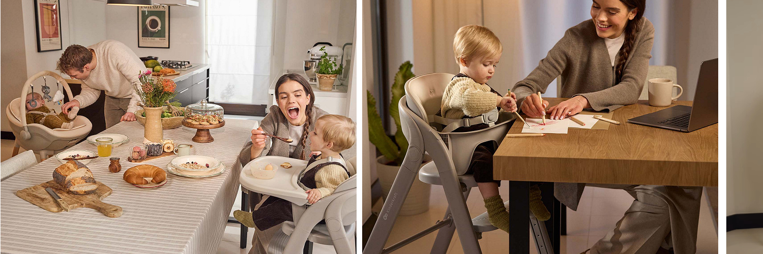 To idealne krzesełko do karmienia do małej kuchni. Intuicyjny mechanizm pozwala na szybkie złożenie konstrukcji, co ułatwia przechowywanie w wąskich wnękach lub transport. Tino nie dominuje w przestrzeni po skończonym obiedzie, pozwalając na swobodne poruszanie się po domu.