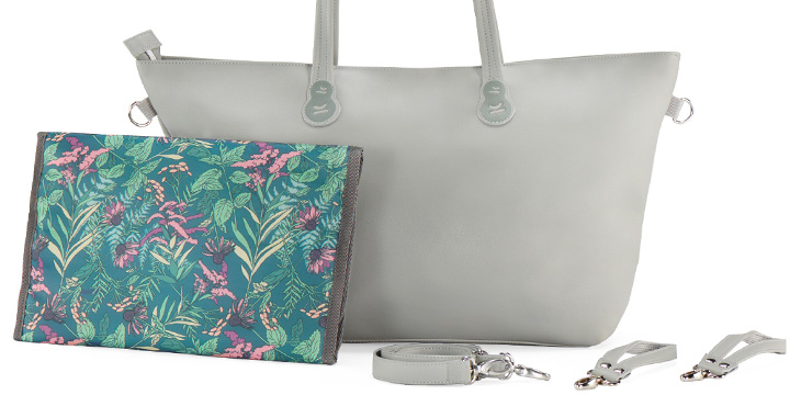 Czasem tak bywa, że musimy przebrać maluszka w dziwnym miejscu. Na pomoc przyjdzie przewijak turystyczny, który jest dołączony do zestawu. Gdy nadejdzie taka potrzeba, rodzic może rozwinąć przewijak a następnie położyć na nim dziecko, dzięki czemu nie tylko dba o zachowanie sterylności w miejscach publicznych, ale także chroni podłoże przed zabrudzeniem - na przykład, kiedy trzeba zmienić pieluszkę na kanapie dziadków. Wraz z przewijakiem w zestawie znajdują się paski do montażu torby na ramie wózka. Treasurebag to produkt, który można nosić na dwa sposoby - na wózku lub na ramieniu.