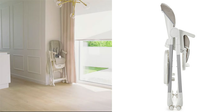 Po złożeniu Kinderkraft Tulo zajmuje wyjątkowo mało miejsca - zmieści się w kącie kuchni, w szafie lub przy stole, nie zaburzając przestrzeni. To idealne rozwiązanie dla nowoczesnych rodzin, które cenią funkcjonalność.