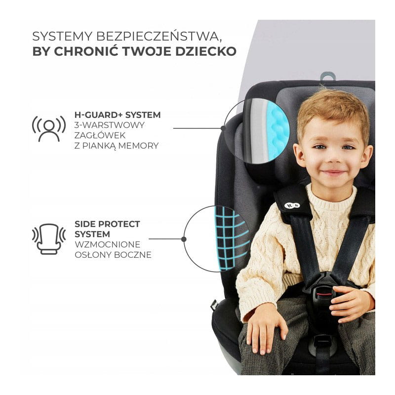 Dzięki temu, że w zagłówku zastosowano system H-Guard, jest on mocny i wytrzymały. Aż trzy warstwy, w tym jedna z pianką memory bardzo dobrze absorbuje energię wytworzoną w momencie zderzenia. Głowa Twojego dziecka jest bezpieczna.