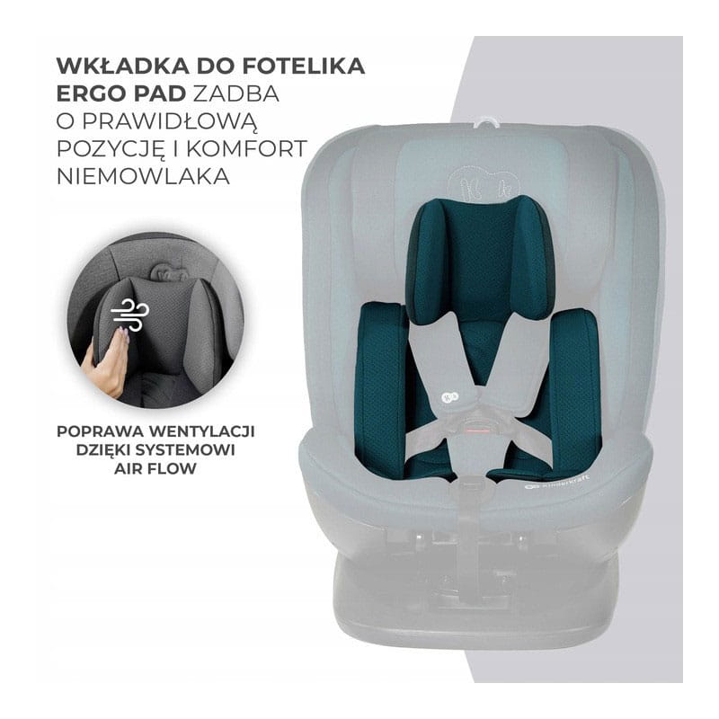 Ergonomiczna, wysokojakościowa wkładka Ergo Pad do siedziska pozwala zachować korzystne i bezpieczne ułożenie kręgosłupa najmniejszych dzieci. Wkładka posiada system wentylacji Air Flow, która sprzyja cyrkulacji powietrza. Z wkładki Ergo Pad korzystamy do momentu osiągnięcia przez dziecko 60 cm wzrostu.