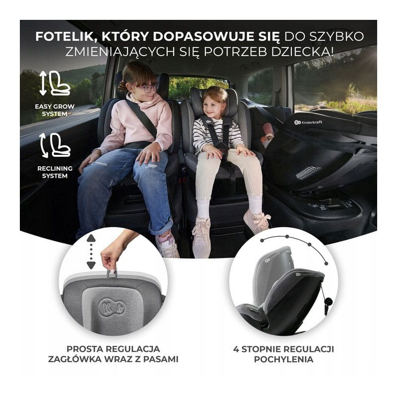 Kinderkraft Xpedition 2 i-Size to następca popularnego wielofunkcyjnego fotelika samochodowego. Podobnie jak jego starszy brat, jest przystosowany do dzieci o wzroście 40-150 cm, wadze ok. 0-36 kg, oraz w wieku ok. 0-12 lat. Dzięki systemowi Easy Grow, przez cały ten czas fotelik rośnie razem z dzieckiem.