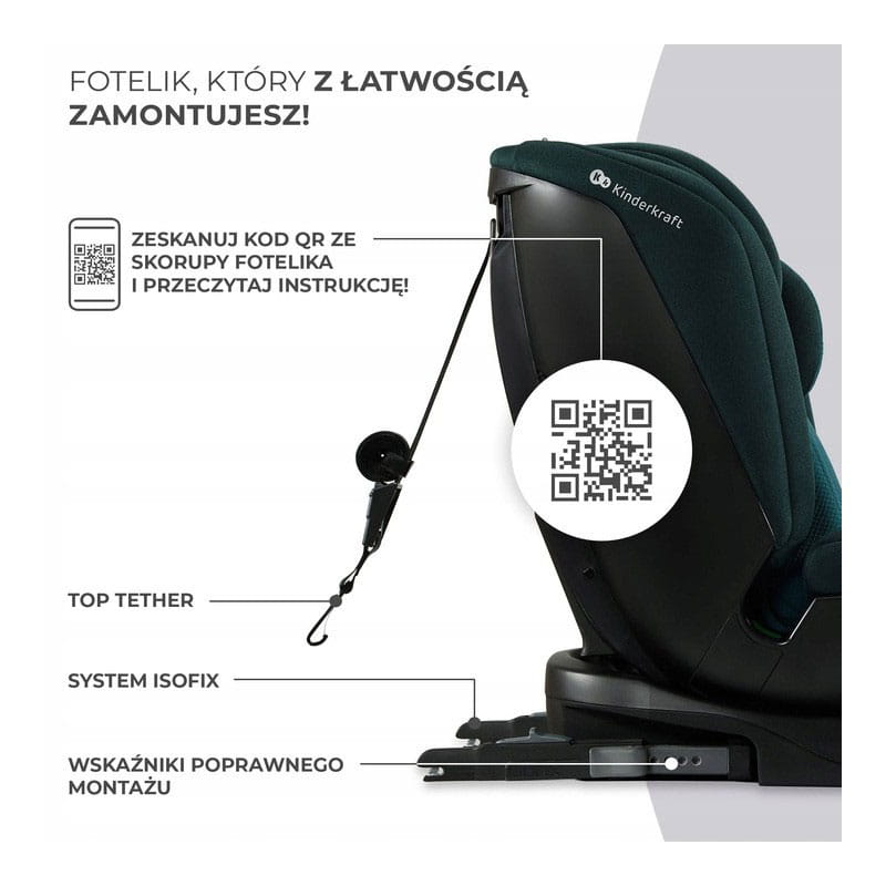 Skanując kod QR znajdujący się na skorupie fotelika, rodzic otrzyma instrukcję montażu. To banalnie proste.