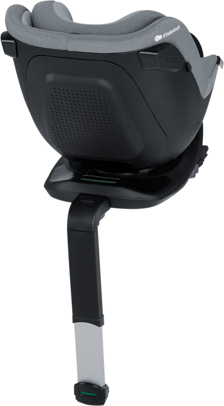 Baza obrotowa z ramą antyrotacyjną sprawia, że jej osadzenie na kanapie samochodu jest bardziej stabilne. Jednocześnie dziecko ma więcej miejsca na nogi. Bazę montuje się za pomocą systemu Isofix, a fotelik można ustawiać przodem lub tyłem do kierunku jazdy. Tyłem - od narodzin do 15. miesiąca życia. Nóżka stabilizująca bazy jest regulowana w aż 11 punktach.
