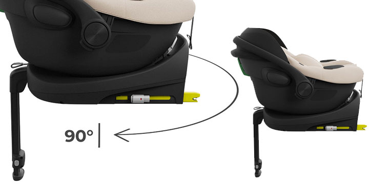 Nosidełko i-Lite zamontowane na bazie Endura Safe FX można obrócić o 90 stopni w stronę drzwi samochodu. Taka funkcja znacznie ułatwia wkładanie i wyjmowanie dziecka, minimalizując przeciążenia pleców rodzica. Ograniczenie obrotu tylko do 90 stopni nie jest przypadkowe - to celowe zabezpieczenie, które gwarantuje, że maluch zawsze podróżuje tyłem do kierunku jazdy, czyli w najbezpieczniejszej pozycji.
